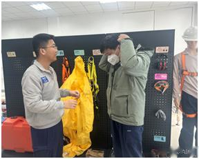 规范防护用品佩戴,提高个体防护水平个人防护装备是劳动者最重要的安全屏障,合理选用、正确佩戴是确保有效防护的关键。公司成立个人防护装备穿戴体验区,向员工系统讲解和演示眼部、耳部、呼吸和全身防护用品的正确选择和使用方法。通过实训体验,员工能够掌握“戴得对、戴得牢、戴得合适”的原则,增强个人防护意识和能力,进一步筑牢职业病防控第一道防线。