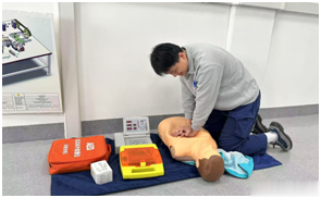 引入应急体验教学,提升救护应对能力在职业健康培训中,公司设立CPR假人&AED体验模块,采用智能模拟人开展心肺复苏与除颤训练。通过实操教学,员工能够掌握在突发紧急情况下的基础救护流程,提升现场自救互救能力,为构建安全、健康、有温度的工作环境提供保障。